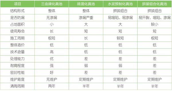 三由玻璃鋼生物化糞池與各種化糞池經(jīng)濟技術(shù)指標(biāo)對比