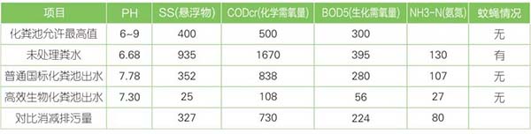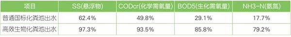 三由玻璃鋼生物化糞池與普通國標(biāo)化糞池的污染去除率對比表(單位mg/L)